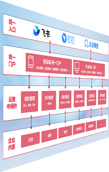 对协作平台提供支持服务,,支持企业应用与协作平台对接,,,包含组织同步、、、消息集成、、、、待办集成等。。支持目前主流的协作平台:钉钉、、企微和飞书。。